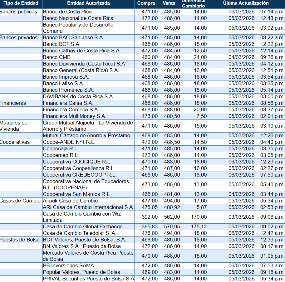 El tipo de cambio del dólar para este viernes 6 de marzo en Costa Rica se ubicó en ₡475,26 la compra y ₡479,79 la venta, según el Banco Central de Costa Rica (BCCR).
