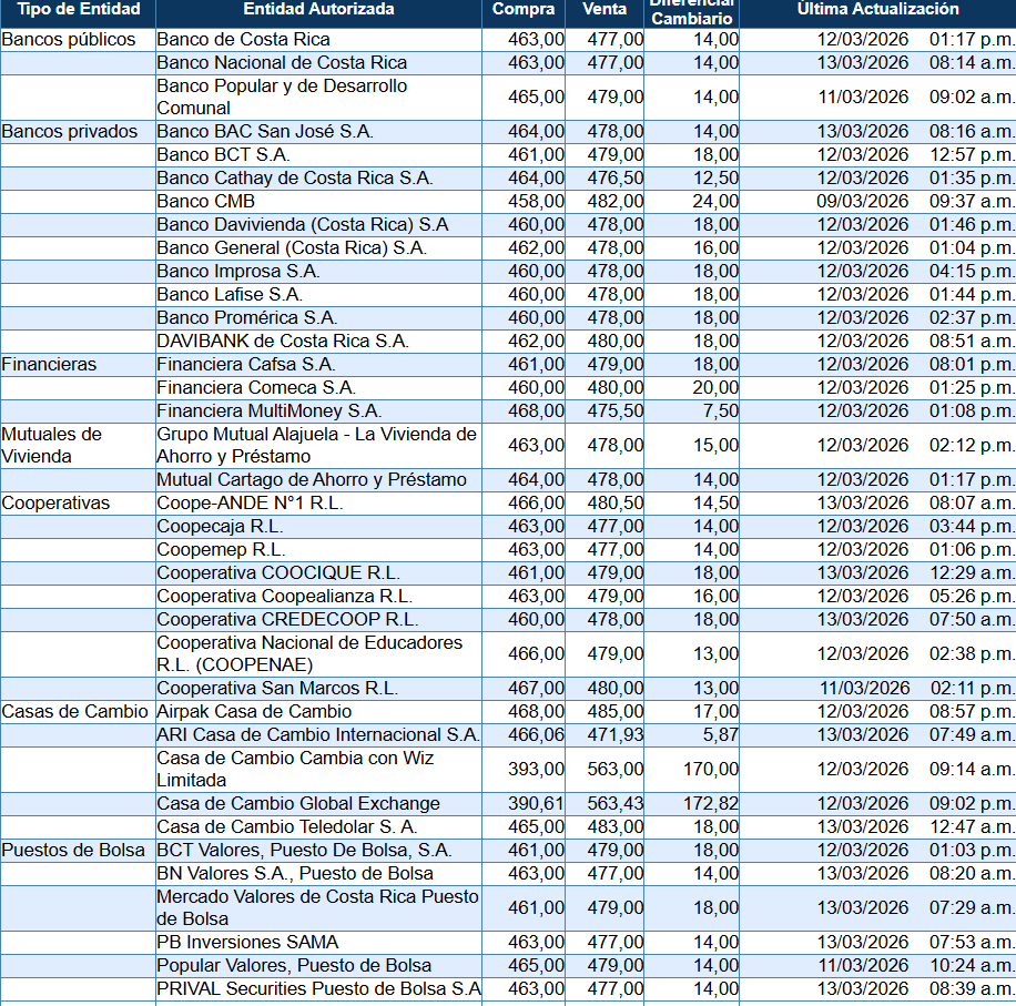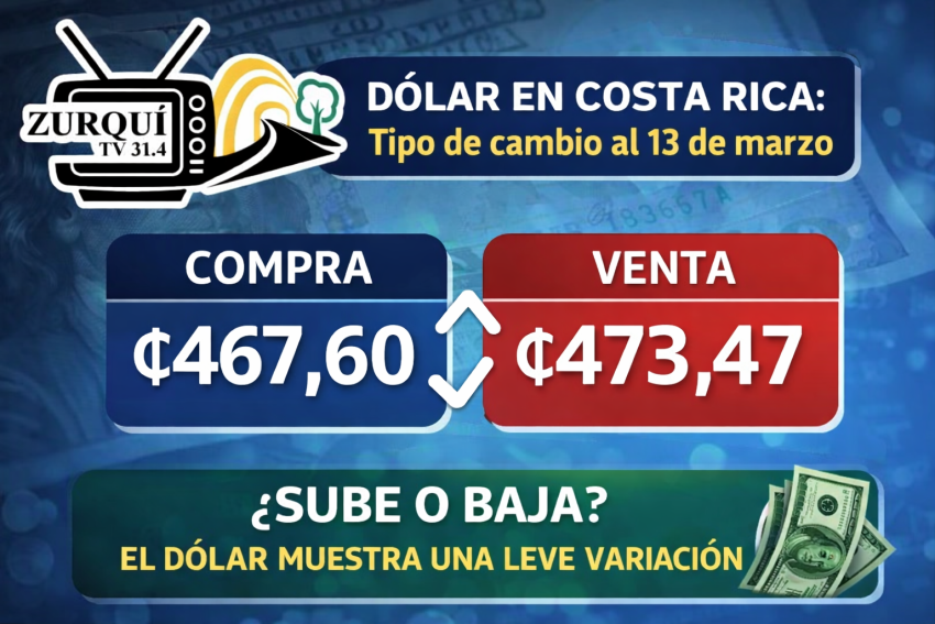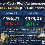 El tipo de cambio del dólar para este 13 de marzo en Costa Rica se ubicó en ₡467,60 la compra y ₡473,47 la venta, según el Banco Central de Costa Rica (BCCR).