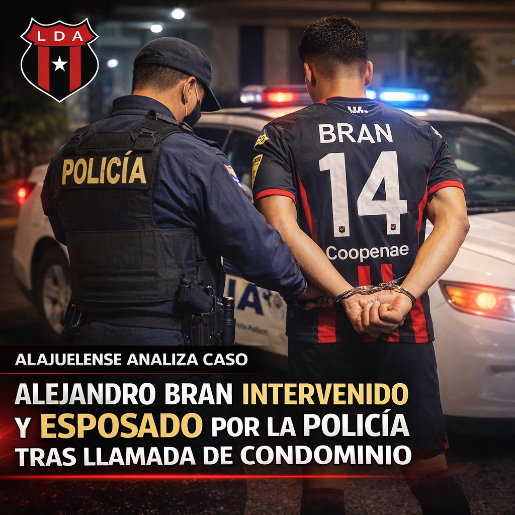 Autoridades atendieron una alerta por ruidos en el lugar; no hubo denuncias ni detención del futbolista El futbolista de Liga Deportiva Alajuelense, Alejandro Bran, fue intervenido por oficiales de la Fuerza Pública la noche de este miércoles en un condominio cercano a La Sabana, luego de que se reportaran supuestos ruidos en el sitio, la…