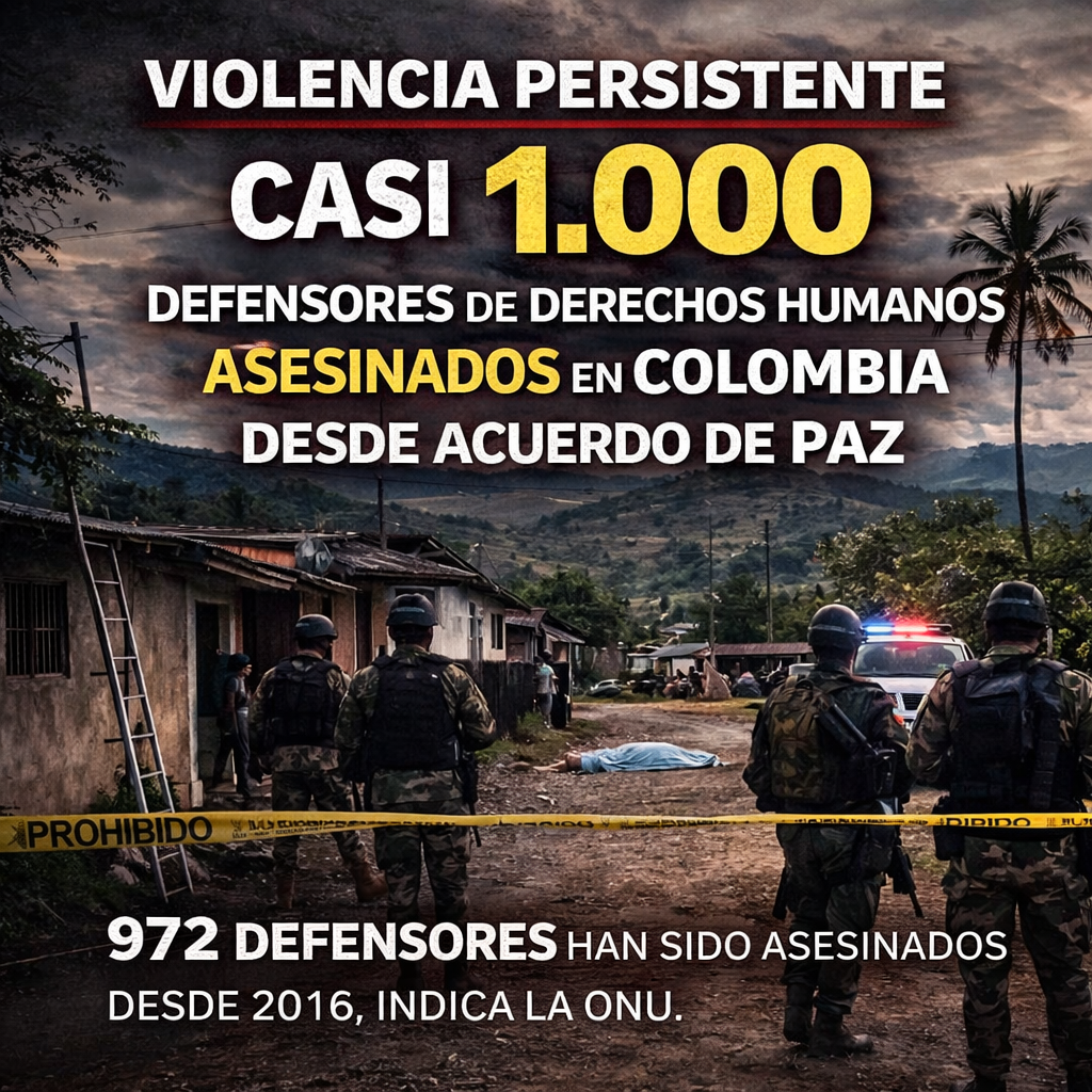 Informe de la ONU alerta sobre un patrón sostenido de ataques tras la firma del acuerdo con las FARC en 2016. Un total de 972 defensores de derechos humanos han sido asesinados en Colombia entre 2016 y 2025, tras la firma del acuerdo de paz con la guerrilla de las FARC, según un informe divulgado…