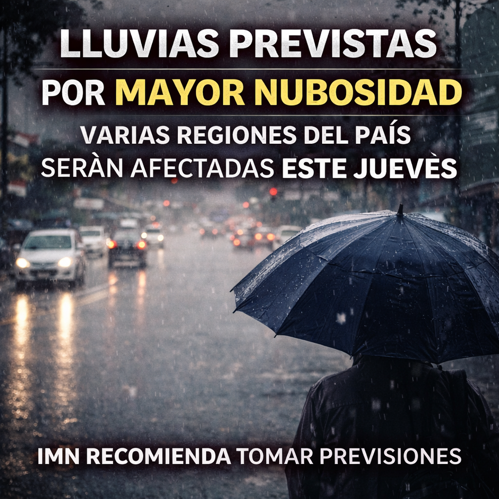 IMN advierte cambio en las condiciones del tiempo por mayor presencia de humedad. El incremento en la nubosidad generará lluvias en distintas zonas del país este jueves, según el pronóstico del Instituto Meteorológico Nacional (IMN). La variación en las condiciones atmosféricas responde a una mayor concentración de humedad, lo que modificará el comportamiento del tiempo…