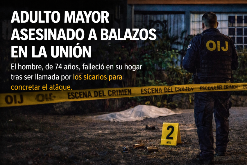 Un adulto mayor de 74 años, de apellido Castillo, fue asesinado a balazos la noche del miércoles en La Unión de Cartago, luego de que varios sujetos llegaran hasta las afueras de su vivienda, lo llamaran repetidamente y le dispararan cuando salió a ver qué ocurría, según el reporte de las autoridades.